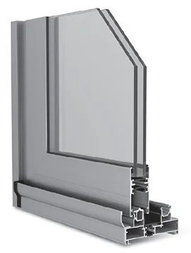 El marco y la hoja de cada ventana están formados por dos perfiles (uno exterior y otro interior) unidos mecánicamente por varillas de poliamida reforzada con fibra de vidrio.